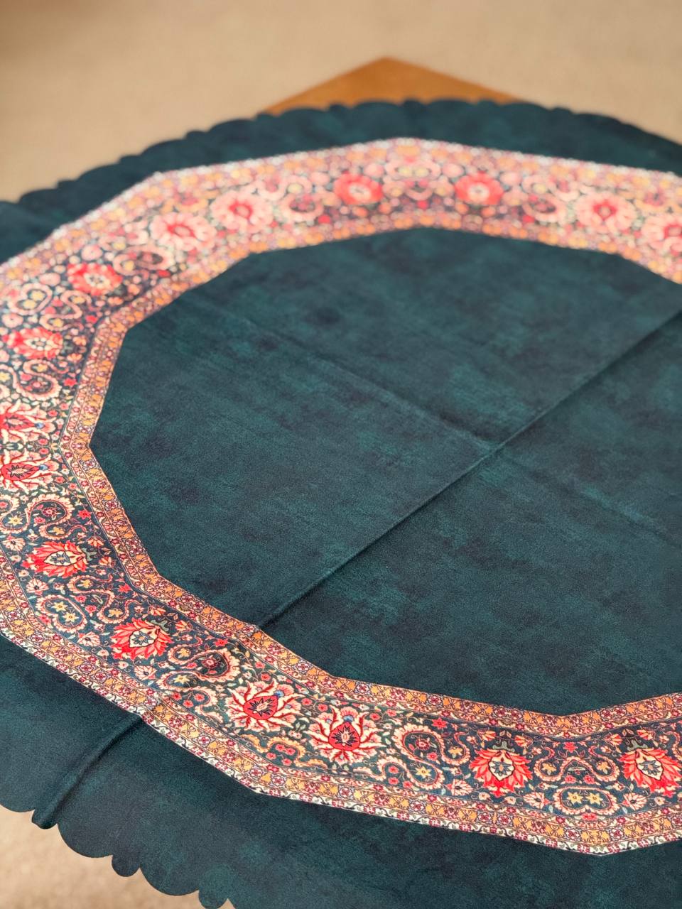 رومیزی گرد طرح یاقوت سبز