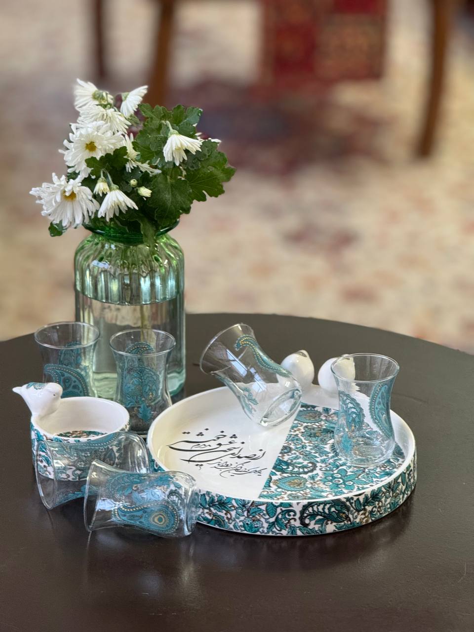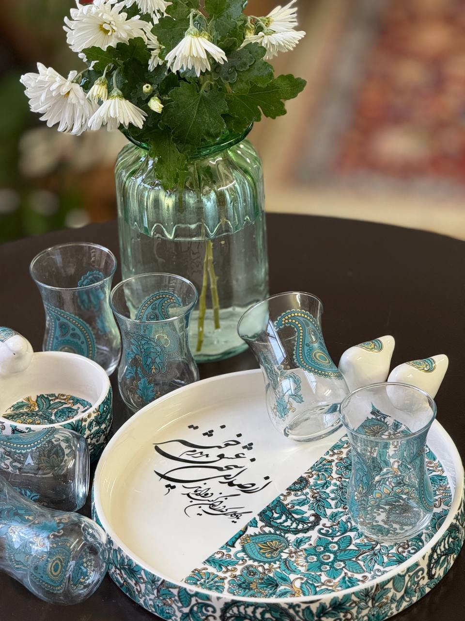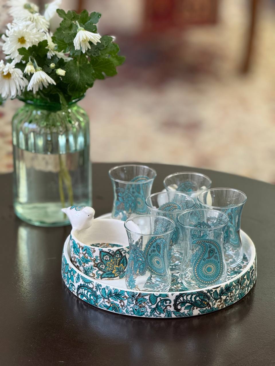 6 عدد استکان + 1 قندان+ 1 سینی گرد