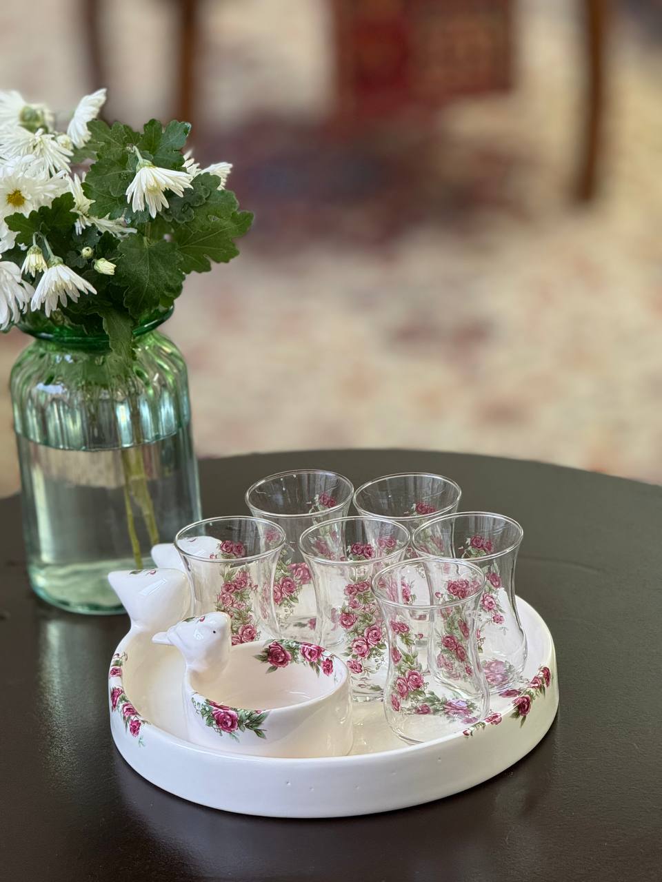 6 عدد استکان + 1 قندان+ 1 سینی گرد